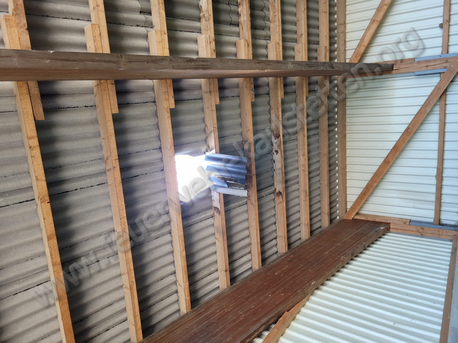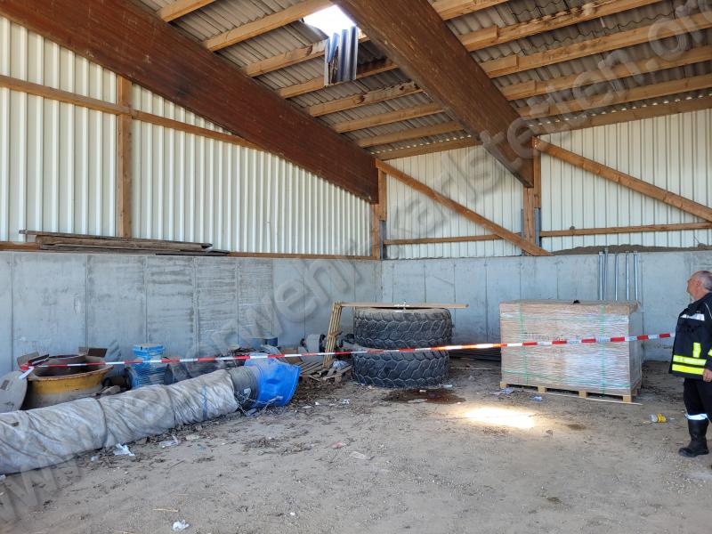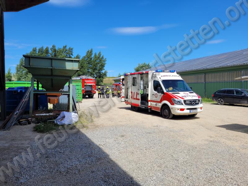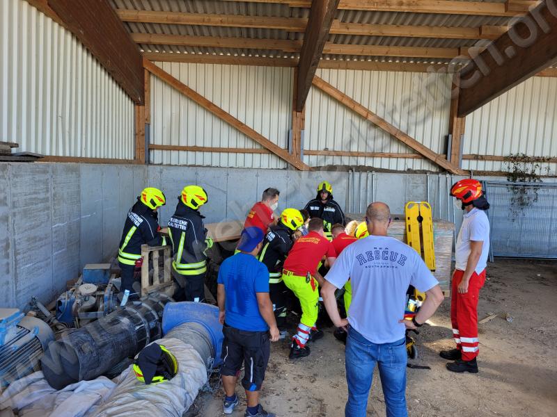 Aus unbekannter Ursache brach eine Tafel des Welleternitdaches und ein Arbeiter stürzte mehrere Meter in die Tiefe. Trotz Verletzung war er jedoch bei Bewusstsein und ansprechbar.