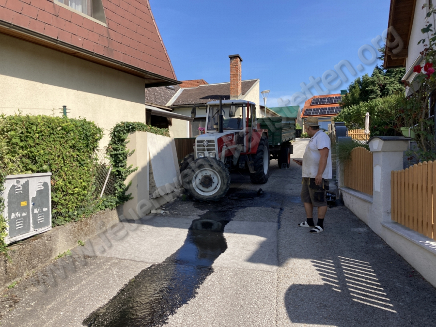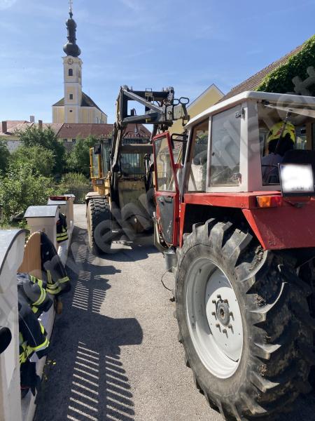 Zu einer Traktorbergung im Ortskern wurden wir heute um 09:17 alarmiert. Der Traktor hatte eine Betonmauer touchiert, dabei trennte sich die Vorderachse und der Traktor konnte nicht mehr weiterfahren.
