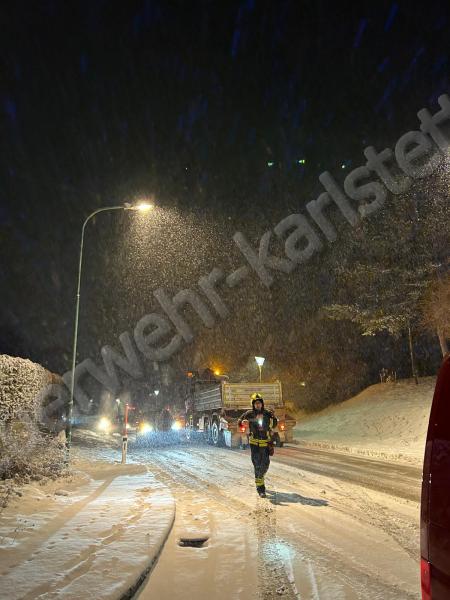 Während der Übung setzte starker Schneefall ein. Im Anschluss stellten wir fest, dass mehrere Fahrzeuge auf der Straße hängen geblieben waren, und leisteten umgehend Hilfe. Ein Fahrzeug musste mittels Abschleppseil den Berg hinaufgezogen werden, weitere erhielten entsprechende Unterstützung beim Weiterfahren. Nach rund einer Stunde konnten wir wieder ins Feuerwehrhaus einrücken.
